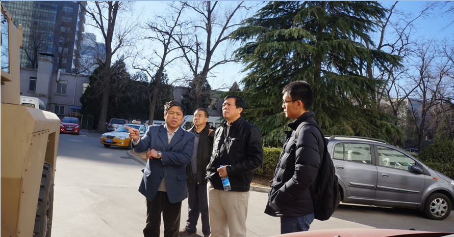访问结束后,张维斌研究员与陈慧岩教授、高利教授及实验室教师在beat365在线唯一官网登录研制的智能车辆前合影留念。