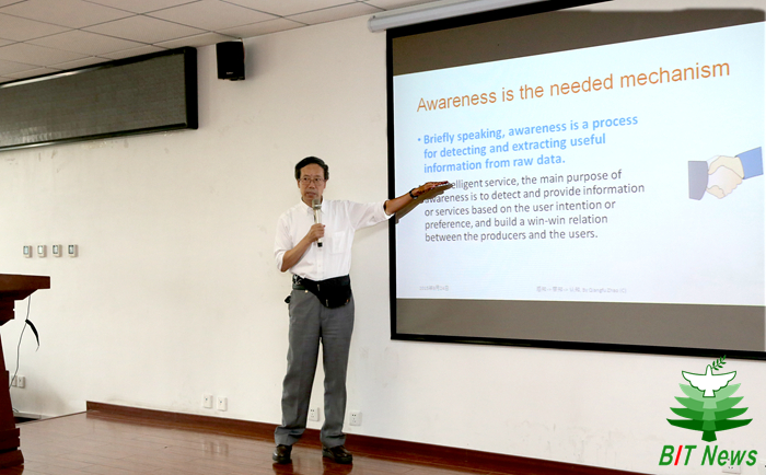 赵强福教授首先简单介绍了Aware Theory的基本概念和内涵,然后清晰透彻地介绍了3-Value Logic Aware System模型;在此基础上,形象具体地通过实际例子介绍了Aware Theory在Intelligence Home和Information Security等方面的应用。赵教授的报告图文并茂,生动活泼,与会师生认真听取了此次报告。报告结束后,赵教授回答了老师和同学们的相关问题。