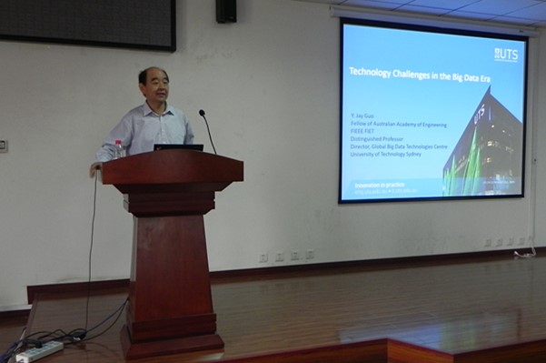 应信息与电子学院邀请,澳大利亚悉尼科技大学终身教授、澳大利亚工程院院士、IEEE&IET Fellow Yingjie Jay Guo(郭英杰)教授于近期在我校访问交流,并于2015年10月7日在信息科学实验楼202报告厅开展了“21世纪学科前沿”学术交流活动,作了题为“Technology Challenges in the Big Data Era”的学术报告。报告会由信息与电子学院龙腾院长主持,出席报告会的有信息与电子学院的教师、本科生及研究生等共60余人。