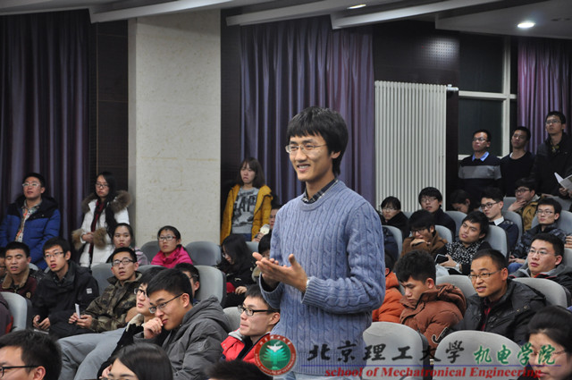 马宝华教授就武器的重要性、现状及发展方向等方面为我们展开报告。他介绍了武器在历代战争中的决定性作用,并用一段视频形象的描绘了武器未来的发展方向。马宝华教授的报告深入浅出,内容丰富多彩,语言幽默风趣,吸引了所有在场听众。马宝华教授今年已经81岁高龄,但在全程两个小时的过程中,为了更好地与同学互动,他坚持站着讲完报告的全部内容,这种对青年学生的关怀令人感动。