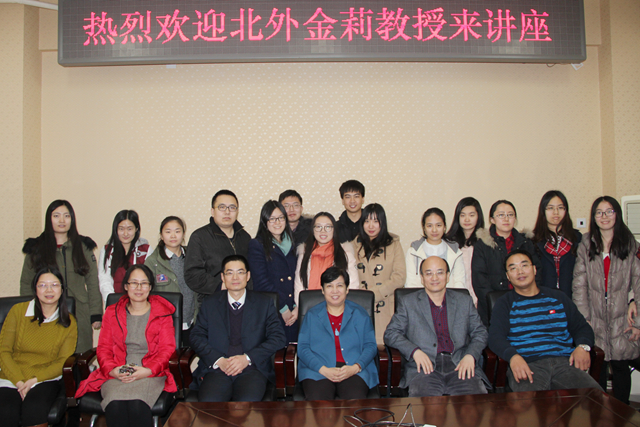 2015年12月15日,beat365在线唯一官网登录外国语学院英语系英美文学中心邀请到北京外国语大学博士生导师金莉教授,为外语学院师生做了题为“斯托夫人的‘红与黑’:谈斯托的反种族主义思想与种族主义偏见”的学术讲座。外语学院党委书记陈大明、院长李京廉与部分师生共同听取了讲座。讲座由外语学院教师鲍忠明主持。