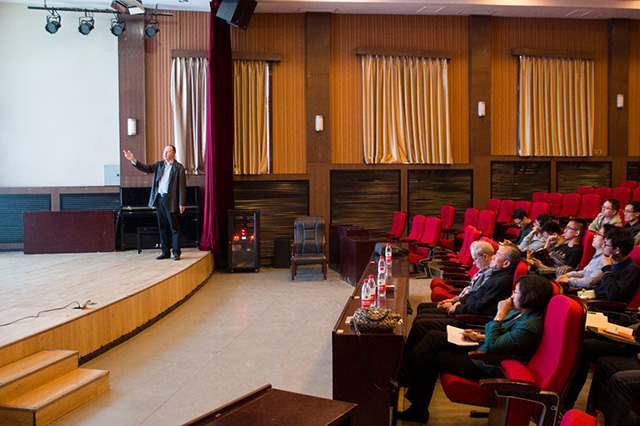 Konstantin教授为在座的师生介绍了其所在实验室在组合导航方向的研究进展,为大家讲解了他们在Kalman滤波方面的创新性进展以及在飞行模拟器研究方面的突出成就。Konstantin教授首先介绍了其实验室平台的研究方向,然后介绍了其研究Kalman算法时所进行的自适应Kalman方法的改善,同时用大量的图片向我们展示了他们在飞行模拟器方面的研究工作,并且对比了我院的无人车研究方向。Konstantin教授希望能使其实验室与我校自动化相关实验室进行学术合作,做出更多的开拓性研究成果。Konstantin教授认真友好的态度赢得了全体师生的热烈掌声。
