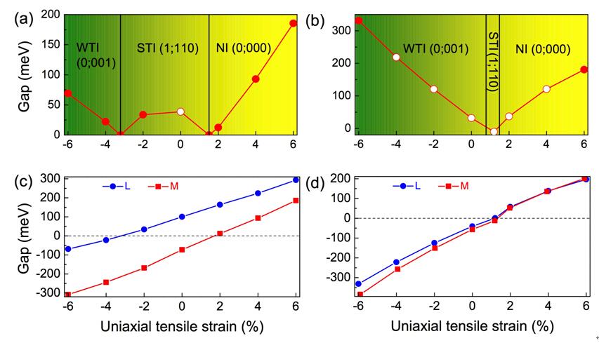 图3单轴应力导致的拓扑相变。