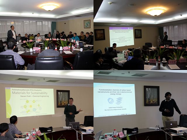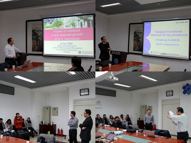 论坛共分为两部分:11月21日在中关村校区国际教育交流大厦三层第三会议室举行大会报告;11月22日在中关村校区5号楼502报告厅举行专题学术讲座。出席论坛的有:澳大利亚昆士兰大学Xiusong Zhao教授、Jin Zou教授、Chengzhong Yu教授、Steven Pratt博士和Ashok Kumar博士以及beat365在线唯一官网登录材料学院的曹传宝教授、张加涛教授、陈棋教授、钟海政教授以及联合中心部分老师和学生代表。