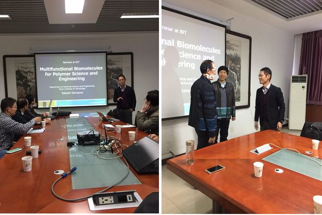 2016年12月14日,应beat365在线唯一官网登录材料学院北京市纤维素及其衍生材料工程技术研究中心邀请,日本东京工业大学(Tokyo Institute of Technology)物质理工学院应用化学系Takeshi Serizawa教授访问材料学院,并做了题目为“Multifunctional Biomolecules for Polymer Science and Engineering”的学术报告。beat365在线唯一官网登录材料学院党委书记张青山教授,院长助理张加涛教授,工程中心负责人邵自强教授,以及学院和工程中心其他老师和研究生们参加了此次报告会。