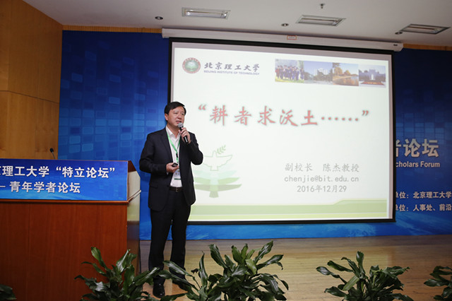 陈杰做了题为《耕者求沃土》的大会报告,代表学校向参会学者介绍学校科技发展状况。他用生动幽默的语言,围绕“为什么要加入北理工和加入到北理工之后如何发展”,详细介绍了北理工的研究平台、学术成就以及发展规划。他用直观的数据表明低调、朴实的北理工是一片可供耕耘的沃土。北理工拥有着多个优势学科领域,可为青年学者事业发展提供强有力的支撑。例如,在机械领域,北理工是装甲车辆和电动车辆的奠基者和缔造者;在电子信息领域,北理工是雷达技术的领跑者;在航空航天领域,北理工是制导控制技术的领军者;在材料科学领域,北理工是装甲与反装甲材料领域的核心力量。在其他很多领域,如微纳制造、大数据、语音识别、石墨烯材料等研究方向也都在国内外具有很大的影响力。同时,为帮助青年教师快速成长,学校设立多个成果转化平台。学校与地方政府、相关企业建立起长期的合作关系,搭建了多个产学研创新平台,合作战略伙伴遍布全国,帮助青年教师将研究理论和研究成果应用到实践中,做到真正意义上的理论与实践结合。报告最后,他指出,就像一棵植物需要肥沃的土地、适宜的气候、精心的呵护才能茁壮成长、开花结果一样,青年教师的进步成长取决于优秀的科研平台、良好的工作环境以及管理人员贴心的服务。他强调,学校将紧紧围绕“创新驱动,协调发展,交叉融合,持续提升”的科技工作目标,秉承“科技引领、创新服务、追求卓越”的科技工作理念,主动服务各位青年学者。