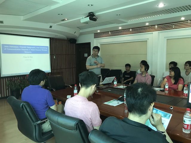 报告会由软件学院副院长刘驰教授主持,我校师生共计50余人参加。报告结束后,万鹏俊教授回答了老师和同学们关心的“如何将无线网络调度算法应用到大数据系统资源最优分配中”,“如何根据不同网络环境定义算法中的干扰参数”等科学问题。万鹏俊教授深厚的算法功底、独到的思维方式和深入浅出的讲解,给在场师生留下深刻的印象。报告会后,刘驰教授课题组与万鹏俊教授讨论了基于无人机的人工智能应用等国际前沿方向,并一致同意在该方向进行深入合作研究。