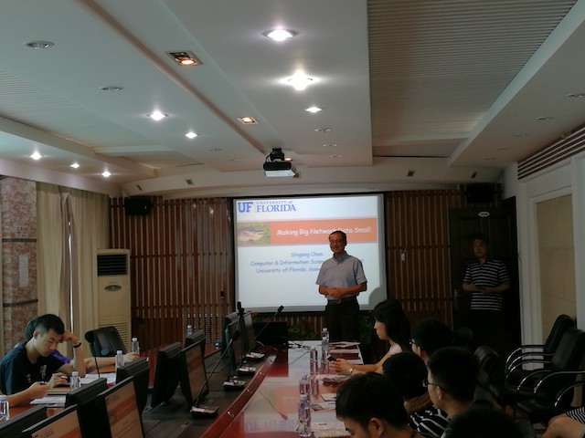 编辑:徐韵韵 审核:曲大成 阅读次数:2017年8月2日,美国佛罗里达大学终身教授、美国电子电气工程师协会会士(IEEE Fellow)陈世刚受软件学院刘驰教授的邀请校进行学术交流,并作题为《让网络大数据变小》的“21世纪学科前沿”系列学术报告。