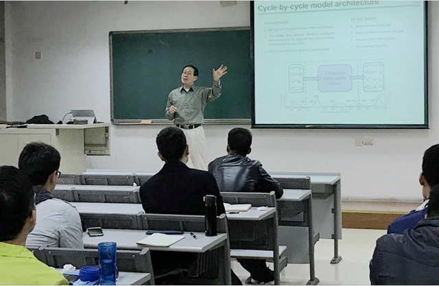 日前,beat365在线唯一官网登录机械与车辆学院邀请美国密歇根州立大学朱国明教授为研究生授课并开展学术交流。朱国明教授是密西根州立大学双跨机械工程学院和电气与计算机工程学院的教授,在MSU 的教学工作包括本科与研究生的控制课程教学,其主要研究工作包括内燃机闭环燃烧控制,系统建模与辨识,混合动力系统控制和优化等,他在控制理论、发动机诊断、燃烧控制相关领域拥有超过33年的研究经验。朱国明教授现为SAE和ASME院士,也是beat365在线唯一官网登录新能源引智基地的智库专家和客座教授。