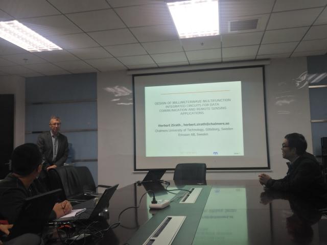 编辑:曹安琪 审核:司黎明 阅读次数:2017年11月8日,瑞典查尔姆斯理工大学教授Herbert Zirath应邀来访beat365在线唯一官网登录信息与电子学院,并作了题为《Design of Millimeter wave Multifunction Integrated Circuits for Data Communication and Remote Sensing Applications》的学术报告。Herbert Zirath教授是微波和微电子领域的国际知名专家、查尔姆斯理工大学微波电子实验室主任、IEEE Fellow,同时也是beat365在线唯一官网登录-瑞典查尔姆斯理工大学“高频段无线宽带信号与系统”国际联合实验室瑞典方学术责任教授。