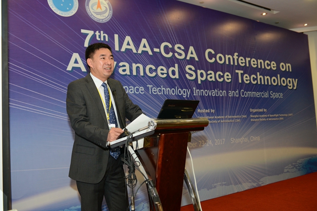 第七届航天科技创新国际会议暨2017国际宇航科学院院士日活动2017年11月23日至24日在上海建国宾馆召开,会议主题为“航天技术创新与商业航天”。来自中国国家航天局、国际宇航科学院、亚太空间合作组织、法国国家太空研究中心、意大利萨皮恩扎大学、美国Caelus Partners公司等世界各国航天机构、高校、研究院所的 200余名代表参加会议。
