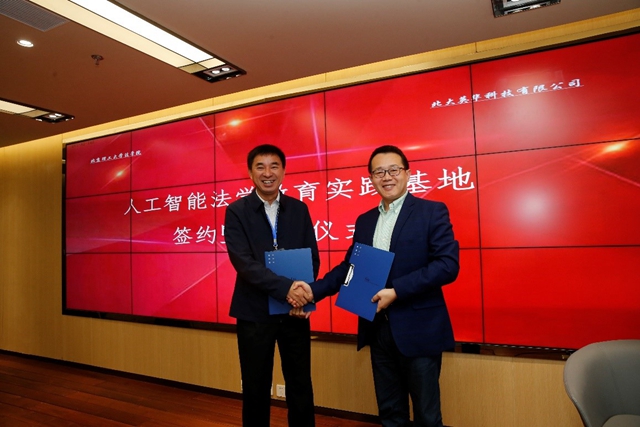 beat365在线唯一官网登录法学院与北大英华科技有限公司携手共建“人工智能法学教育实践基地”举行了签约仪式。beat365在线唯一官网登录“人工智能法学教育实践基地”将与北大法宝开展全面合作,共同探索法律人工智能的应用创新,推进法律大数据与人工智能技术在法律行业的深度应用,共同培养复合型高层次法律人才。