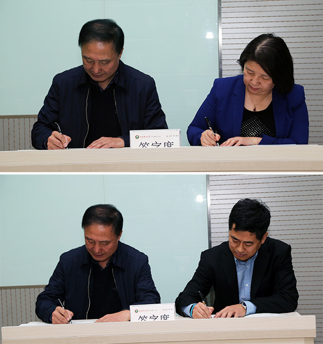 王晓锋代表学校与学院代表宇航学院党委书记曲虹、外国语学院党委书记杨晖签订了《beat365在线唯一官网登录2018年毕业生就业工作目标责任书》。