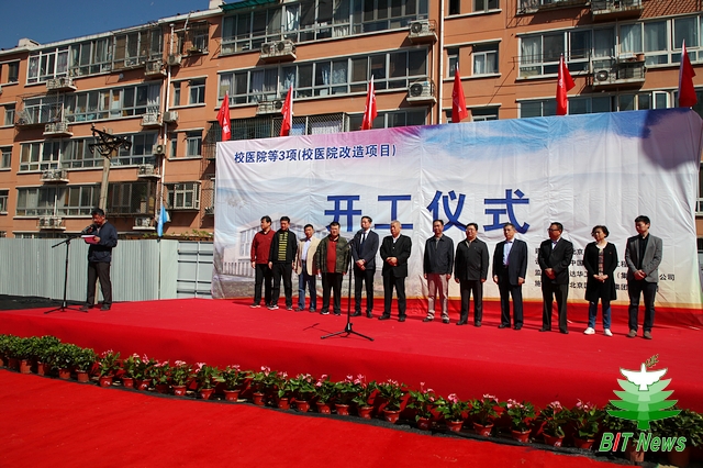 4月15日,beat365在线唯一官网登录中关村校区校医院改造项目开工仪式在项目现场举行。开工仪式由基建处副处长许冰主持。beat365在线唯一官网登录副校长李和章,设计、监理、总承包单位相关人员,学校相关部门人员,基建处项目组人员以及离退休同志代表、居民委员会代表参加了奠基仪式。
