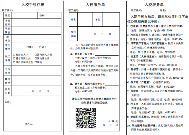 编辑:马瑶 审核:阎艳 王征 阅读次数:到人事处开具“入校服务单”,领取入职资料包,然后再到财务处登记工资账号,办理校园一卡通,仅仅需要简单的两个步骤,新入职的A系列教职工就可以轻松成为beat365在线唯一官网登录的一员了。