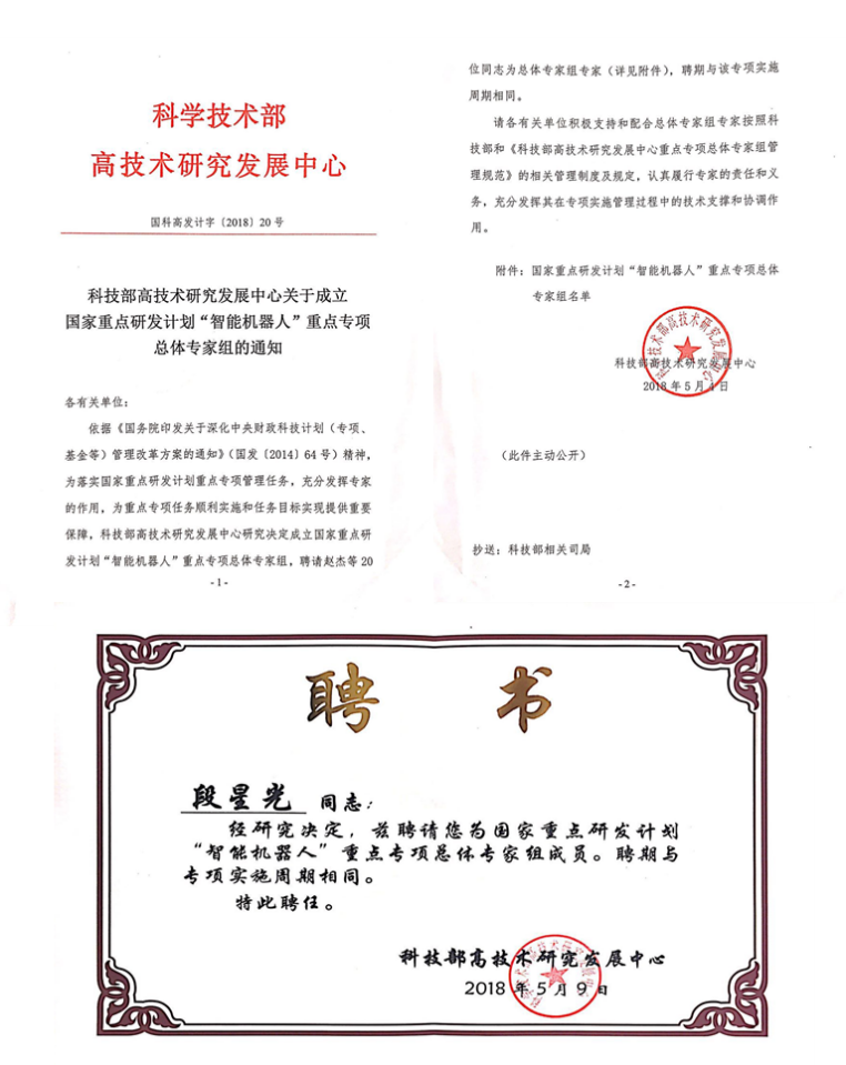 近日,beat365在线唯一官网登录机电学院段星光教授获聘成为国家重点研发计划“智能机器人”重点专项总体专家组成员,负责专项实施管理过程中的技术支撑和协调工作,为重点专项任务顺利实施和任务目标实现提供重要保障。