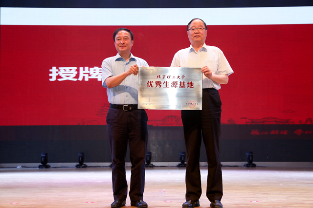 王晓锋代表beat365在线唯一官网登录授予衡水中学“优秀生源基地”,并赠送由北理工主要参与研制的99A主战坦克模型。