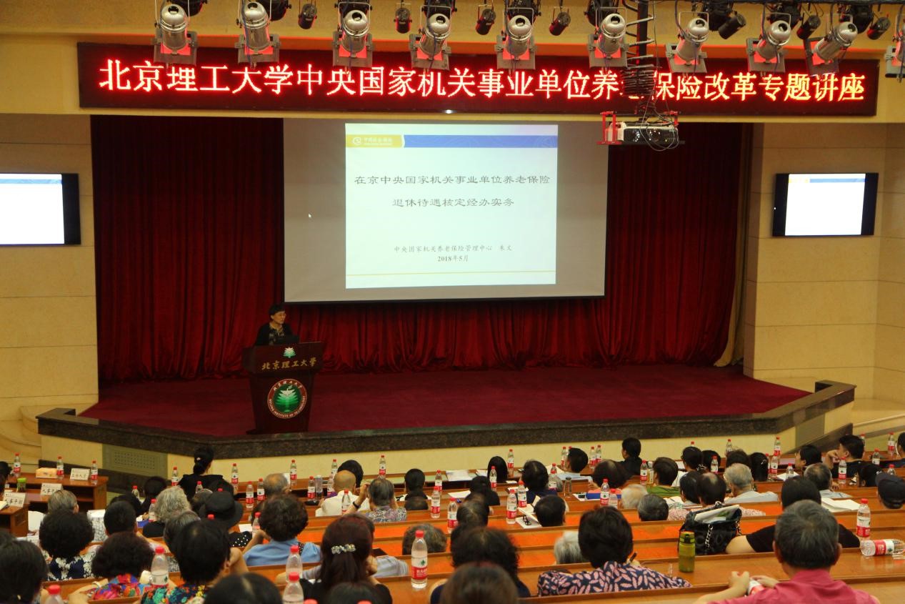 中央国家机关养老保险管理中心于2018年6月全面启动我校在职教职工保费征缴和退休教职工待遇发放工作,为了让广大教职工更清晰地了解中央国家机关事业单位养老保险改革相关政策,保证改革工作平稳过渡,我校邀请中央国家机关养老保险管理中心待遇核定处处长朱文于6月4日下午两点在中心教学楼报告厅开展beat365在线唯一官网登录中央国家机关事业单位养老保险改革专题讲座。