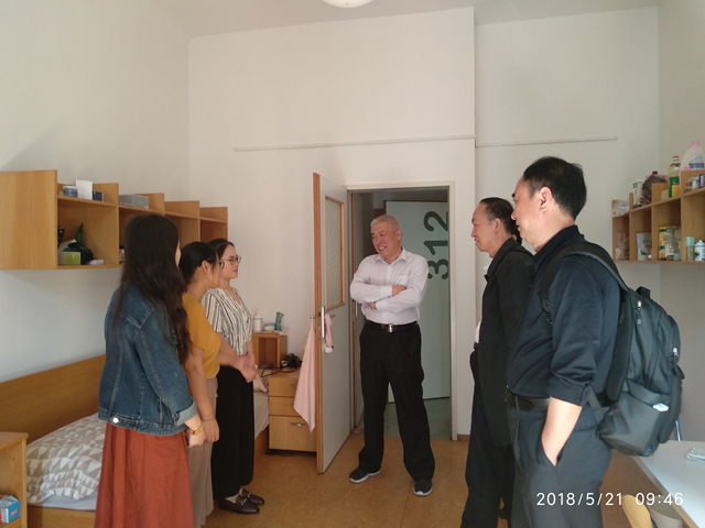 5月21日,李和章一行来到维也纳大学(University of Vienna),看望了北理工在维也纳大学学习的交换生。代表团还参观了学生宿舍,对宿舍保卫管理及预防灾害事故管理进行了实地考察。