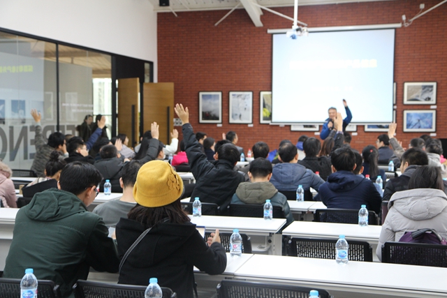 探路者产品技术总监龙晋为老师们带来了一场精彩的讲座,用专业易懂的方式向大家介绍了民族户外品牌的发展与成长,并现场演示了探路者最新研发成果。老师们对产品的设计制作兴趣浓厚,争先提问,现场气氛轻松活跃。