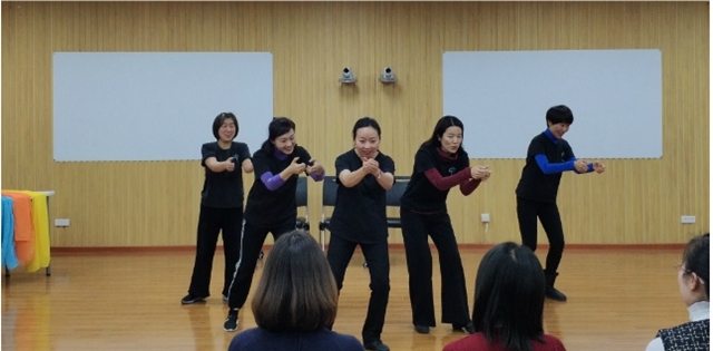 王晶晶和仇芳分别结合自身工作经历,介绍了教师发展中心和萨提亚师生心理关爱工作室成立的背景、职能以及联合举办此次活动的目的。活动开始后,心剧社的演员们带来了独具特色的自我介绍,随后根据在场教师分享的小故事,用极具创造性和艺术美感的表演方式,将其中的困惑、想法、情绪和记忆影像转化成生动的戏剧场景。两个小时的活动中,讲述者、演员与观众之间不断产生共鸣、互相牵引,重新形成新的联结。在场教师通过倾听他人、分享自己,对自己的情绪和生活有了更多觉察,其困惑和纠结也得到了释放和转化,从而实现内在成长。