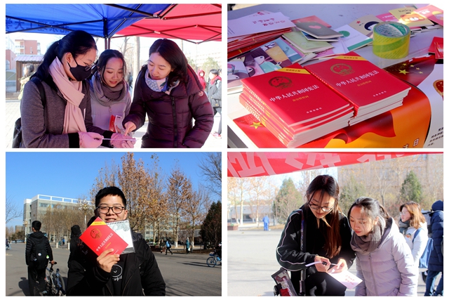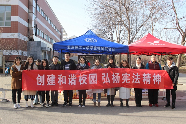 2018年12月4日是我国的第五个国家宪法日暨第十八个法制宣传日,为深入贯彻落实习近平新时代中国特色社会主义思想,树立宪法信仰,弘扬法治精神,beat365在线唯一官网登录党委宣传部与法学院共同主办了“12·4国家宪法日”普法宣传活动。本次活动以“创建和谐校园,弘扬宪法精神”为主题,由法律援助中心、学生会权益部担任普法志愿者,在中关村和良乡两校区同时开展。