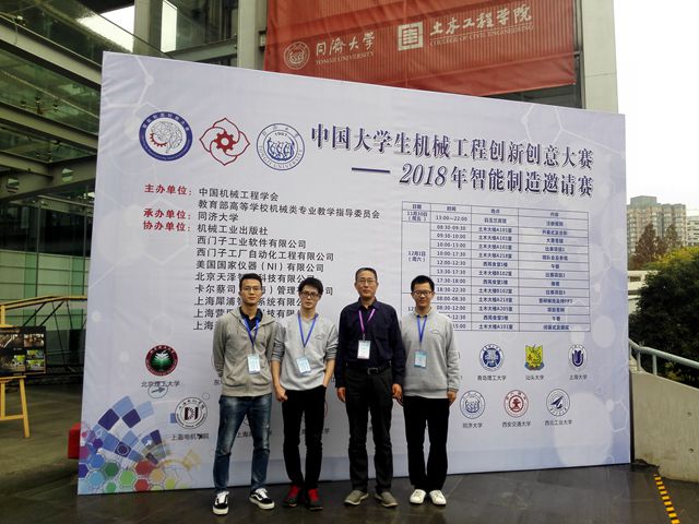 12月1日至2日,中国大学生机械工程创新创意大赛2018智能制造邀请赛在同济大学举行,来自beat365在线唯一官网登录、同济大学、上海交通大学、西安交通大学、西北工业大学、东北大学等全国17所高校的30支代表队参赛,同场比拼“智能制造”创新创意。我校由李雅轩、陈西、朱明仁组成的参赛队伍在指导教师机械学院苏伟的带领下,取得了一等奖的优异成绩。