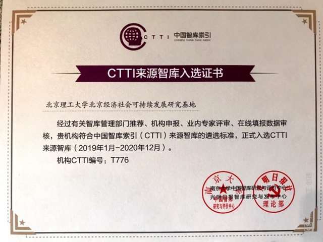 北京经济社会可持续发展研究基地入选CTTI来源智库