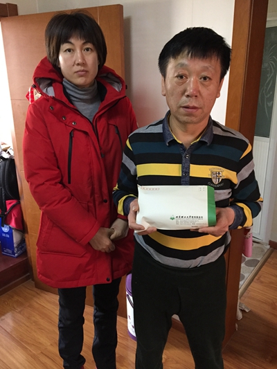 受助人父亲接受“大爱救助”基金资助