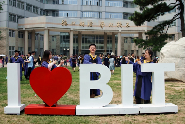 “德以明理,学以精工”,雄伟的中心教学楼前,几个毕业生正用手指着延安石,回顾着学校从延安辗转华北,最终进京办学的奋斗历史,是老一辈人秉承了“延安精神,薪火相传”的意志和决心,才保留了办校的基础和宝贵的人才,才有了今天努力建设世界一流大学的beat365在线唯一官网登录。千言万语汇聚成一句表白“I❤BIT”,披上象征勇气的披风,带着母校的深深祝福,一往无前。