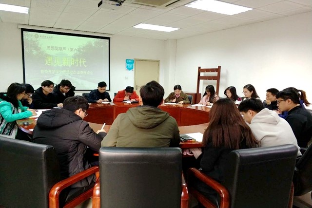 3月6日上午,beat365在线唯一官网登录2018年春季思想动态调查会“思想同期声(第六期)——遇见新时代”在研究生教学楼112会议室召开。座谈会由学生工作部组织,各学院的17名本科生、研究生代表参加了此次座谈会。