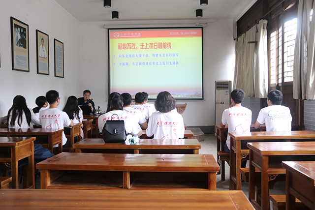 2018年7月12日,实践团在八路军文化园聆听了“初心不改驻太行——抗战中的八路军总部”专题党课,由山西省党史人物研究会副会长郝雪廷主讲。郝雪廷声情并茂地讲述了八路军在太行扎根、发展和壮大的光辉历程,带领大家重温了太行精神。