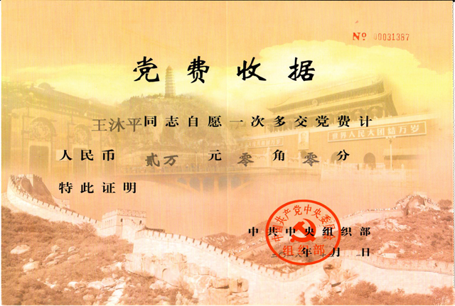 【新闻特写】来自中共中央组织部的一份特殊党费收据