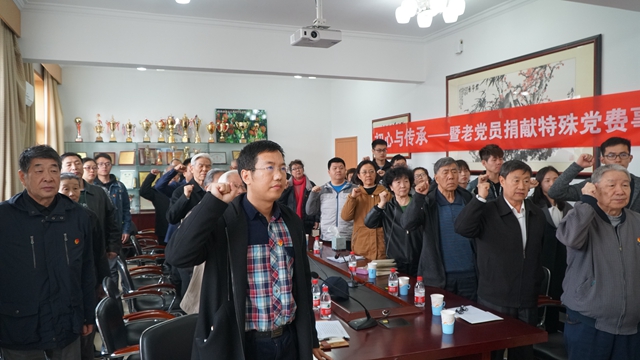 为了学习宣传王沐平同志坚定共产党员理想信念的高尚情操、一生对党忠诚老实的无私精神,激励学校全体教职工党员不忘初心、牢记使命,2019年3月19日下午,离退休教职工党委“青老同心”党建工作室举办“初心与传承——暨老党员捐献特殊党费事迹青老座谈会”,北理工老、中、青三代共产党员近40人齐聚现场,一起共同学习王沐平同志的先进事迹,感悟王沐平老师入党之初心和对党的深爱之情,重温入党的铮铮誓词。