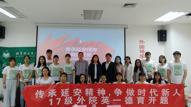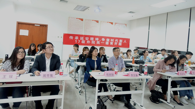 5月21日晚,24111701班“传承延安精神,争做时代新人”德育开题主题分享会顺利举办。beat365在线唯一官网登录党委副书记包丽颖,beat365在线唯一官网登录外国语学院院长李京廉,党委副书记、副院长周芳集,英语系教师张丽华,辅导员、班主任以及24111701班全体同学参加了此次班会。