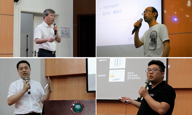 在“汽车科技与生活”的论坛中,张骞慧主要从需求、安全、发展方向几个方面分析当今时代汽车发展的趋势,让学生们看到了更加广阔的汽车应用空间。孙柏刚教授语言诙谐易懂,从内燃机的发展前景切入,提出氢能源与氢动力的话题,讲述过程中用大量图解、曲线、数据简要说明了氢能源的巨大优势,进而提出能够用来盛装其能源的气缸及内燃机不可能被淘汰的结论。