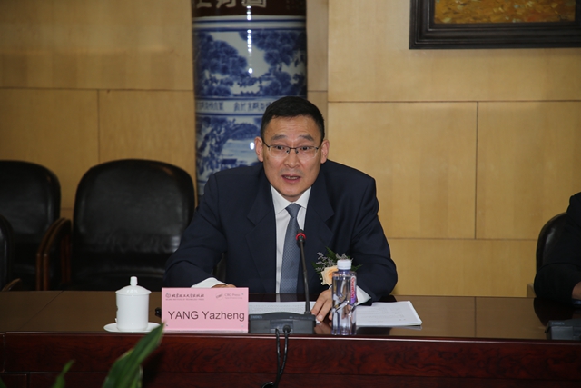 杨亚政致欢迎辞。他对贝谨立总裁一行表示热烈欢迎,代表学校高度肯定双方建立的战略合作伙伴关系,他讲到,泰勒-弗朗西斯出版集团是一家历史悠久、实力雄厚、声誉遍及全球的大型学术出版集团,在专业学术出版领域拥有着广泛的经验。北理工出版社作为学校教学科研建设的重要支撑部门,近年来为学校学术成果走向世界做了大量工作,本次战略合作框架协议的签署,标志着双方在科学、技术和工程等领域的协同出版开启崭新的篇章,必将进一步推动学校办学国际化、学科建设国际化和学术成果走向世界。最后,杨亚政表示学校将大力支持北理工出版社与泰勒-弗朗西斯出版集团的战略合作,并对双方未来的合作致以美好的祝愿。